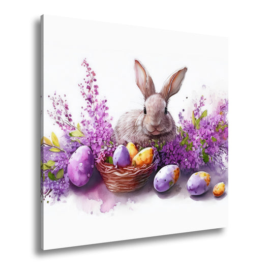 Leinwandbild Frühlingszauber – ein Osterhase in einem Meer aus Blüten.