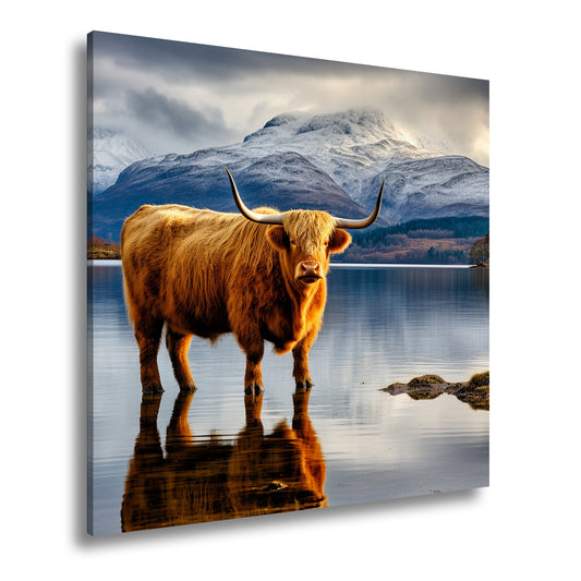 Highland-Rind Leinwandbild - Majestätische Seespiegelung