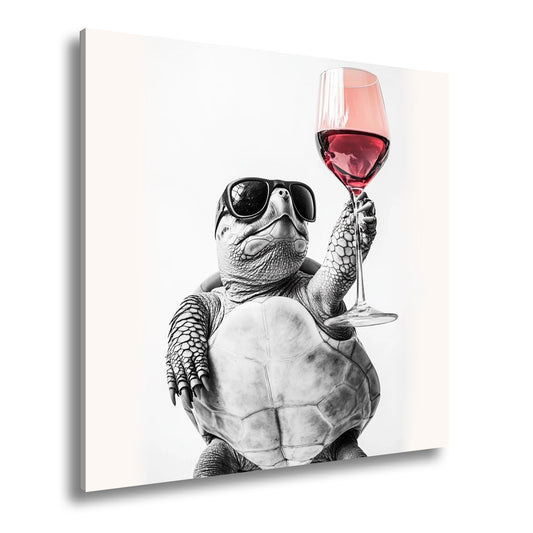 Leinwandbild Wein & Coolness – Schildkröte erhebt ihr Glas mit Stil.