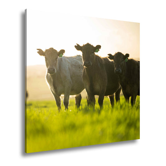 Leinwandbild Landidylle – Kühe im goldenen Glanz des Morgens.