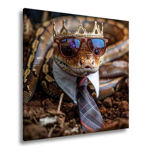 Leinwandbild Schlangenkönig – Stilvoll gekrönt mit Krawatte und Sonnenbrille.