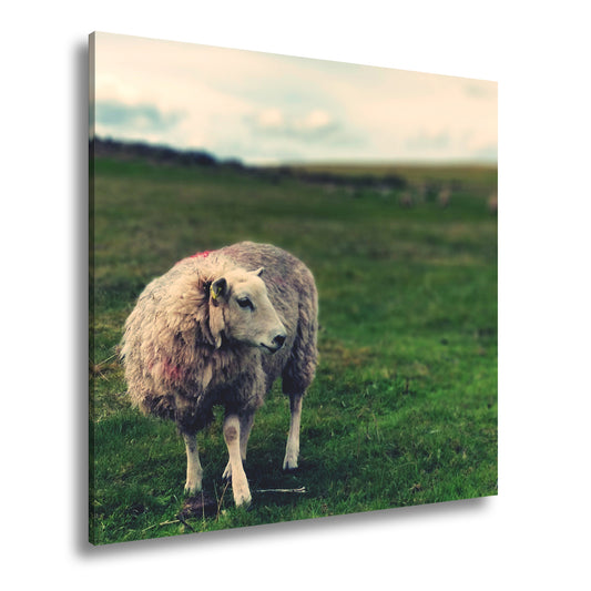 Leinwandbild Schaf blickt verträumt über endlose grüne Weiten.