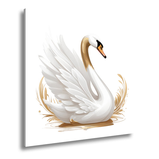 Leinwandbild Eleganter Schwan mit goldenen Wasserspritzern