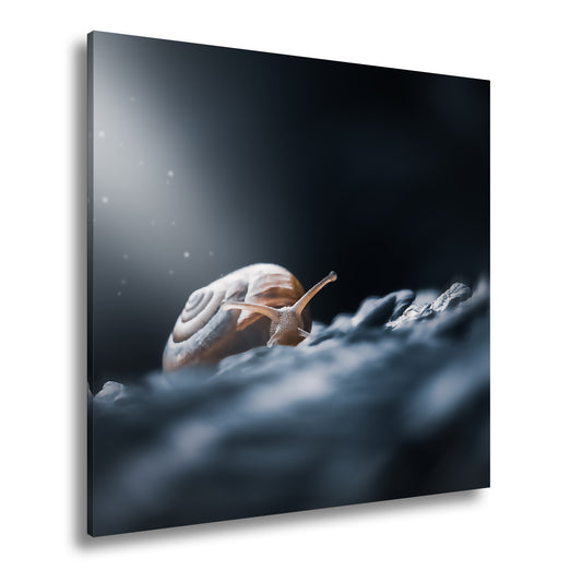 Leinwandbild Schnecke wandert ins Licht – Stille Natur XXL
