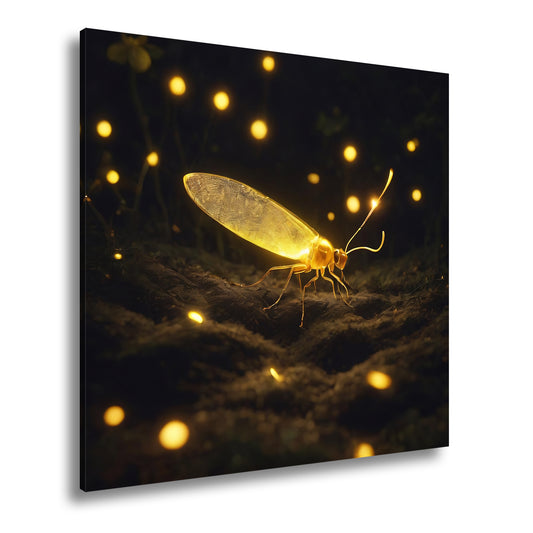 Leinwandbild Goldenes Insekt leuchtet wie ein lebendiger Stern im Dunkel