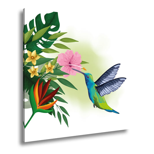 Leinwandbild Kolibri küsst eine Blüte im tropischen Farbenspiel