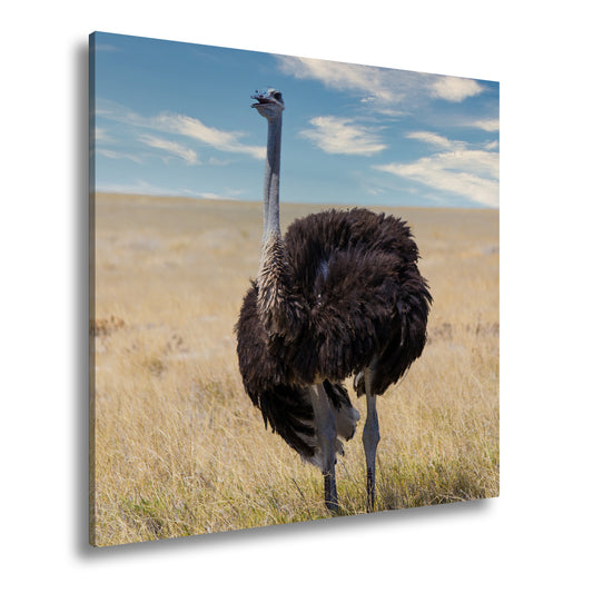 Leinwandbild Neugieriger Strauß im goldenen Savannengras XXL – Wildtiere Afrika