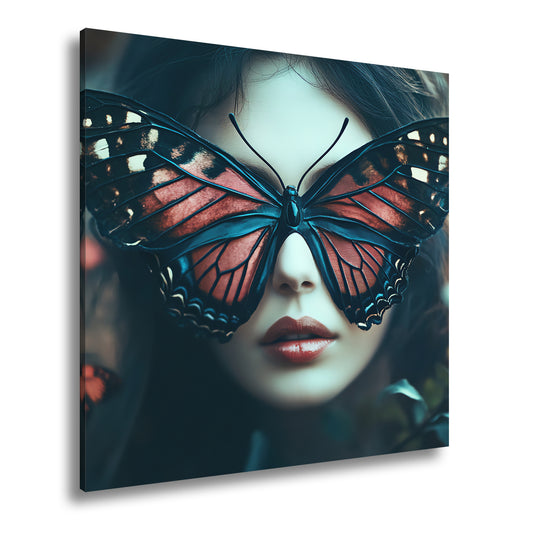 Leinwandbild Schmetterlingsflügel verhüllen ein geheimnisvolles Gesicht