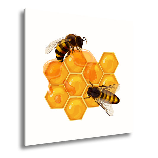 Leinwandbild Bienen sammeln goldenen Honig auf funkelnden Waben