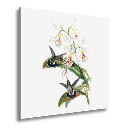 Leinwandbild Orchideen und Kolibris tanzen in zarter Naturharmonie