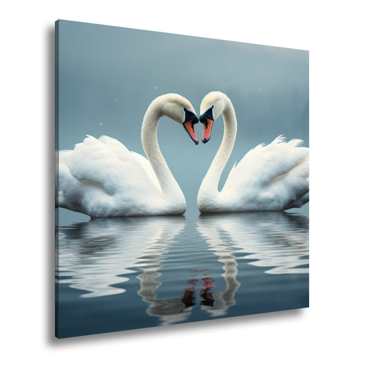 Leinwandbild Zwei Schwäne spiegeln Liebe im stillen, blauen Morgen.