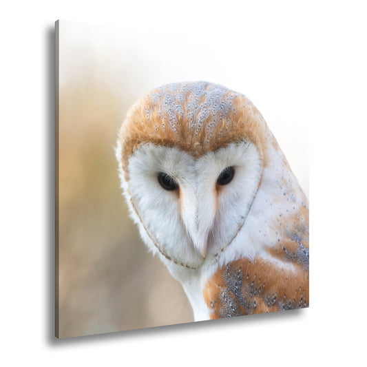Leinwandbild Neugier mit Federkleid – Schleiereule kippt charmant den Kopf.