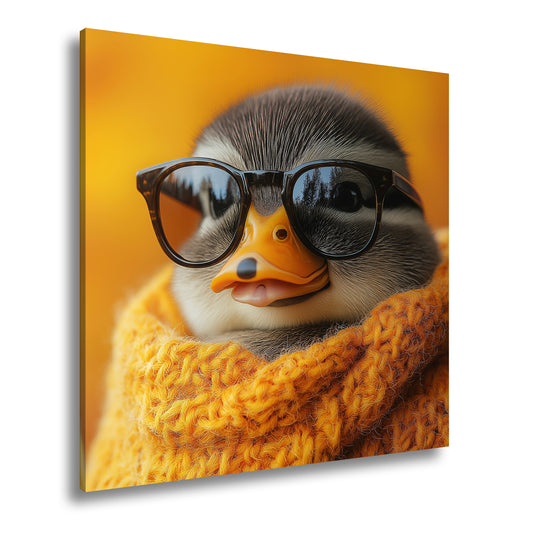 Leinwandbild Schlaue Flauschigkeit – Küken mit Brille und Charme.