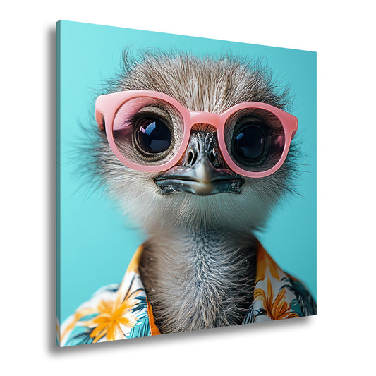 Leinwandbild Cooler Blick – Strauß in Sonnenbrille mit Urlaubsflair.