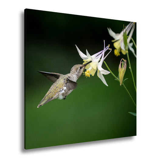 Leinwandbild Schwebend zart – Kolibri küsst eine elfenhafte Blüte