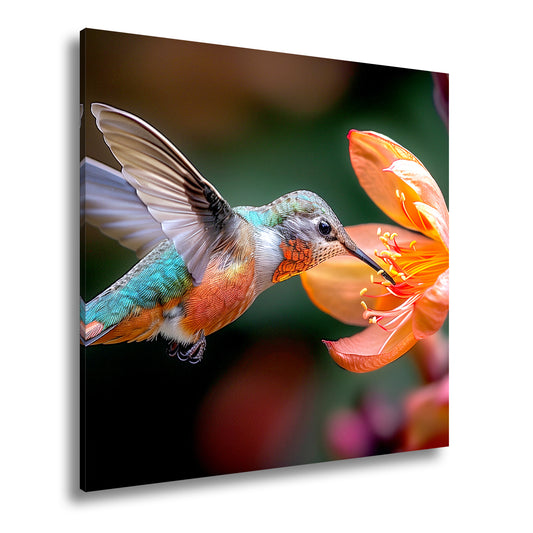 Leinwandbild Kolibri küsst die Blüte – Farbenpracht in vollendeter Harmonie.