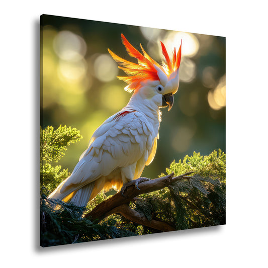 Leinwandbild Krönender Kakadu – Licht küsst das Feuer seiner Federn.