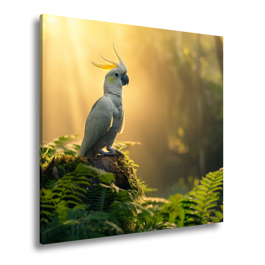 Leinwandbild Dschungelgold – ein Kakadu im Strahl der Morgensonne.