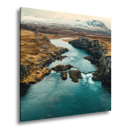Leinwandbild Ein Fluss aus Eis und Himmel durchquert goldene Weiten.