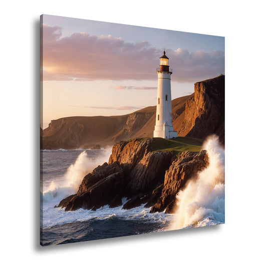 Leinwandbild Leuchtturm trotzt der Gischt, wachend über rauer Küste.
