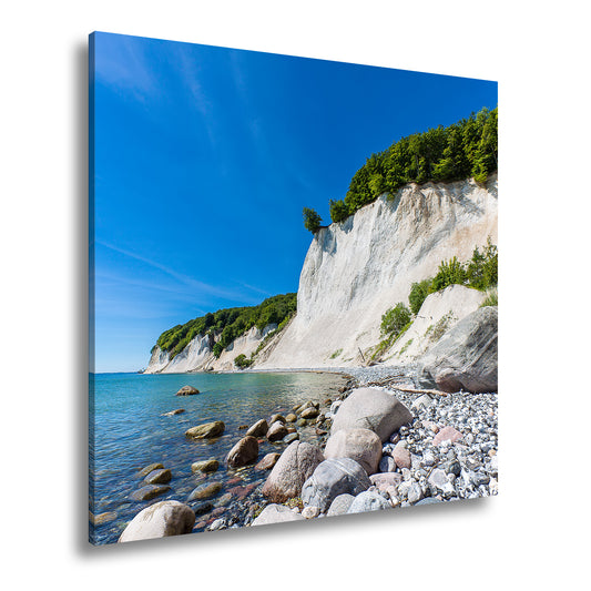 Leinwandbild Kreideküste glänzt unter tiefblauem Sommerhimmel.