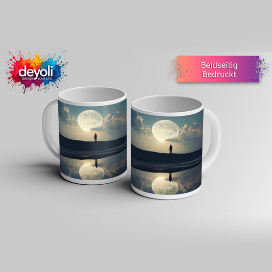 Motivtasse Einsamer Blick zur übergroßen Mondspiegelung