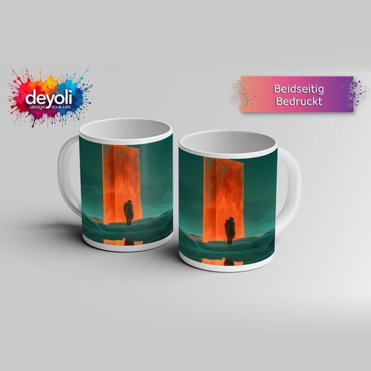 Motivtasse Ankunft im Unbekannten – das Licht der Fremden erwacht.
