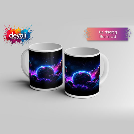 Motivtasse Galaktisches Farbenspiel zwischen Sternen und Planeten.