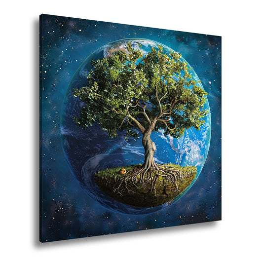 Leinwandbild Wurzeln in den Sternen – die Erde ruht im Baum.