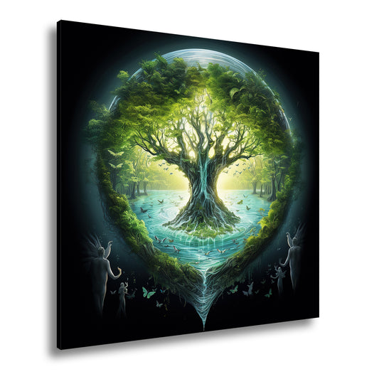 Leinwandbild Der Lebensbaum strahlt in einer magischen Wasserwelt.