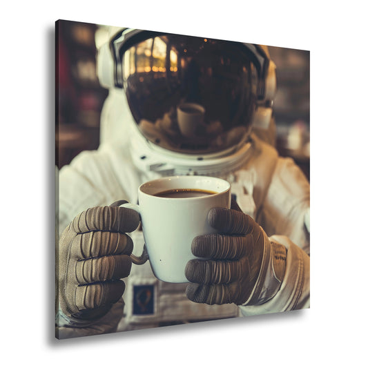 Leinwandbild Kaffeepause im Kosmos – Astronaut genießt irdischen Genuss.